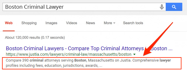 For effective law firm marketing, however, you need to start before the potential client is even on your homepage. Meta descriptions, title tags, and more are essential parts of SEO for law firms. When used properly, this information can sell your law firm without the need for a click.