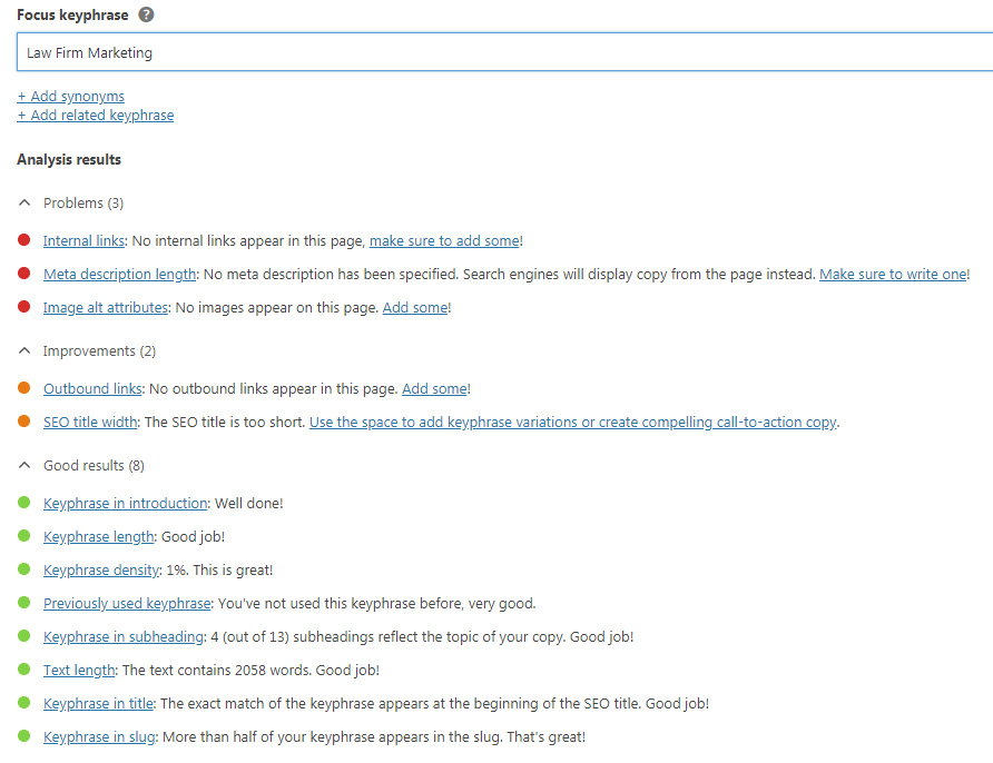 Verifying your website and ensuring that all of your information (business name, address, phone number, and tagging) are all correct. This is the basic step that law firm marketing services should take.